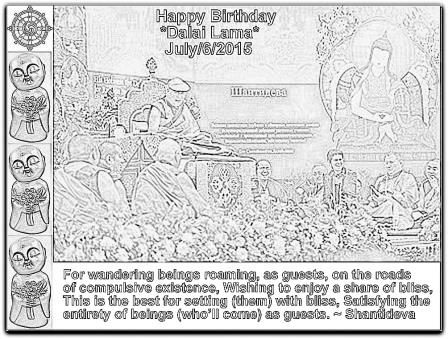 Dalai Lama's Life In Pictures & Shantideva's Engaging In Bodhisattva Behavior - Translated by Alexander Berzin- Pictures: Dalai Lama Google+ - Made by: YouTube tienvnguyennet - Apr/7/2015Written By: Tịnh Ngọc, Tịnh Như, Nguyễn Văn TiếnSan Jose, April/7/2015Second Letter To His Holiness, The 14th Dalai Lama Of Tibet.Your Holiness:In the closing paragraph of your Nobel Lecture in 1989, you took a verse within Shantideva's Engaging In Bodhisattva Behavior, it is as follows:"For as long as space endures, And for as long as living beings remain, Until then may I, too, abide. To dispel the misery of the world."When we reread this book, we see a lot of similarities between Shantideva's book and your own life.Just as, Santideva's book was admired by people through time; even so, Your Holiness, your own life was admired by people through time.Just as, people thank Shatideva, for he clearly described the Bodhisattva vows in his book; even so, Your Holiness, we thank you because you have been a lively example of how Bodhisattva practised his vows, because we have had a chance to see your daily life by our own eyes (of course, we have seen you through computer media.)Because of your numerous good deeds in your last eighty years of life, we know that you are a Bodhisattva in disguise, you came to this life to share suffering and happiness with everyone.And when we made this project, we had a chance to look at your pictures which were taken at different places and at different countries to spread Buddhist Dharma to people. These photographs deeply touch us, and further more, we can easily see your happy nature and your infectious smile on these pictures, along with your humorous actions which resemble young kids who show their actions and smiles because they had the chance to talk and share pictures with you.Your Holiness, we would like to thank you because you prove that Bodhisattva is not only a beautiful holy statue, he only lives in Shatideva's book, or he meditates on the prayer table, or on the main hall of temples, Bodhisattva sits and closes his eyes midway to let people pay respect and pray; Bodhisattva really is a man, who mostly travels from country to country, goes to places where people invite him to give Buddhist Dharma lectures, he looks simple because he mostly wears two colours robes, one style robes, which are made by rather cheap materials, he looks young for his age, is handsome, loveable, easygoing, always happy, easy to laugh, has a good sense of humour, he is very well-known and people highly respect and admire him. Your Holiness, you are, in fact this man.We wish you a happy eightieth birthday, and we wish that we can continue to do so in many more of your future birthdays.Tien Van Nguyen and my family.