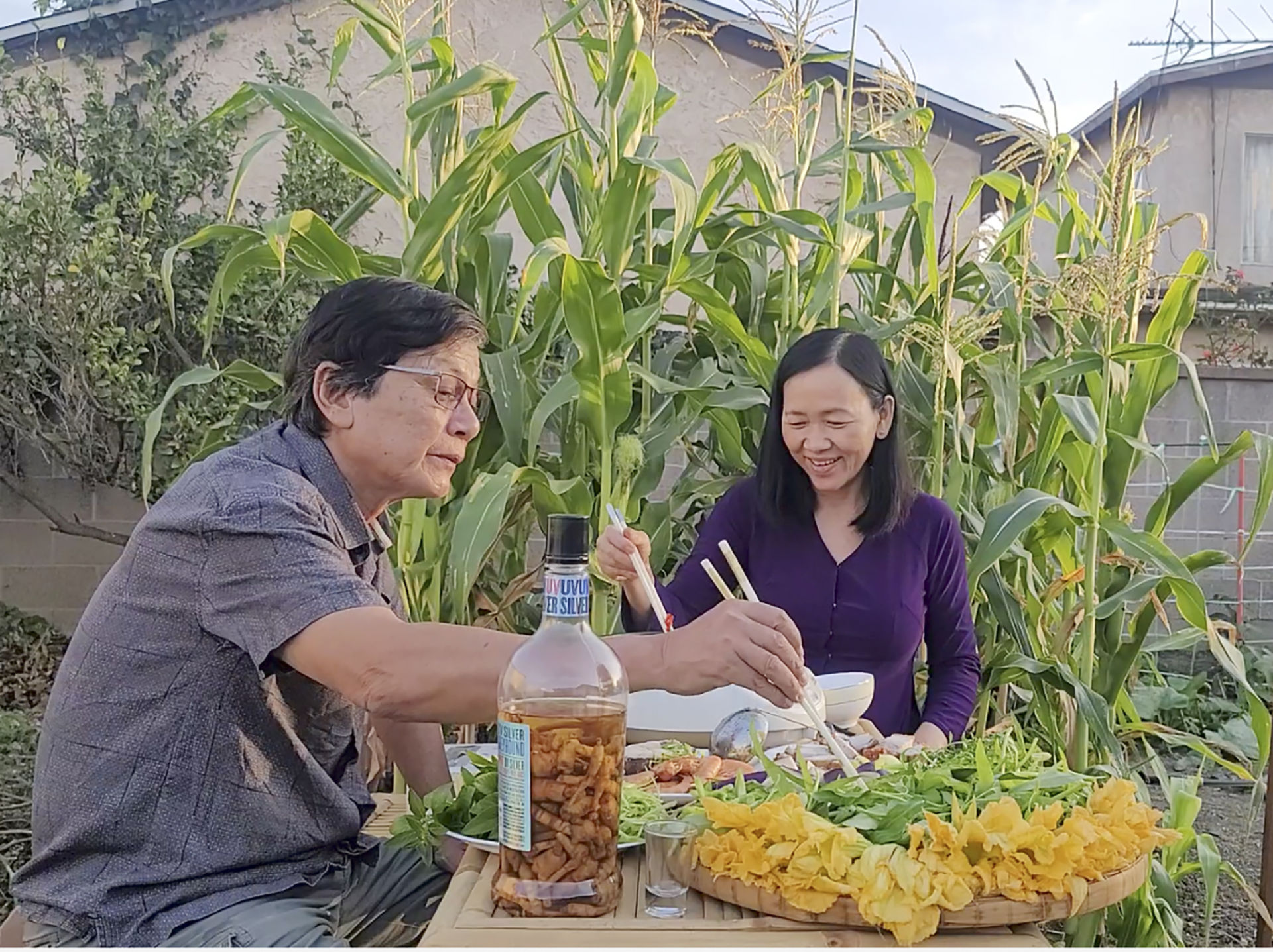 TORRANCE, California (NV) – Đôi vợ chồng Võ Lão Nông – Trùm Sò Thúy Dư từ Việt Nam qua Mỹ thăm cháu ngoại rồi thành Robinson sống đơn độc giữa thành phố Torrance, California, chung quanh toàn người Mỹ suốt năm COVID-19 vừa qua. Biến nguy thành cơ, họ trồng rau, chế biến món ăn đặc sản thuần Việt.